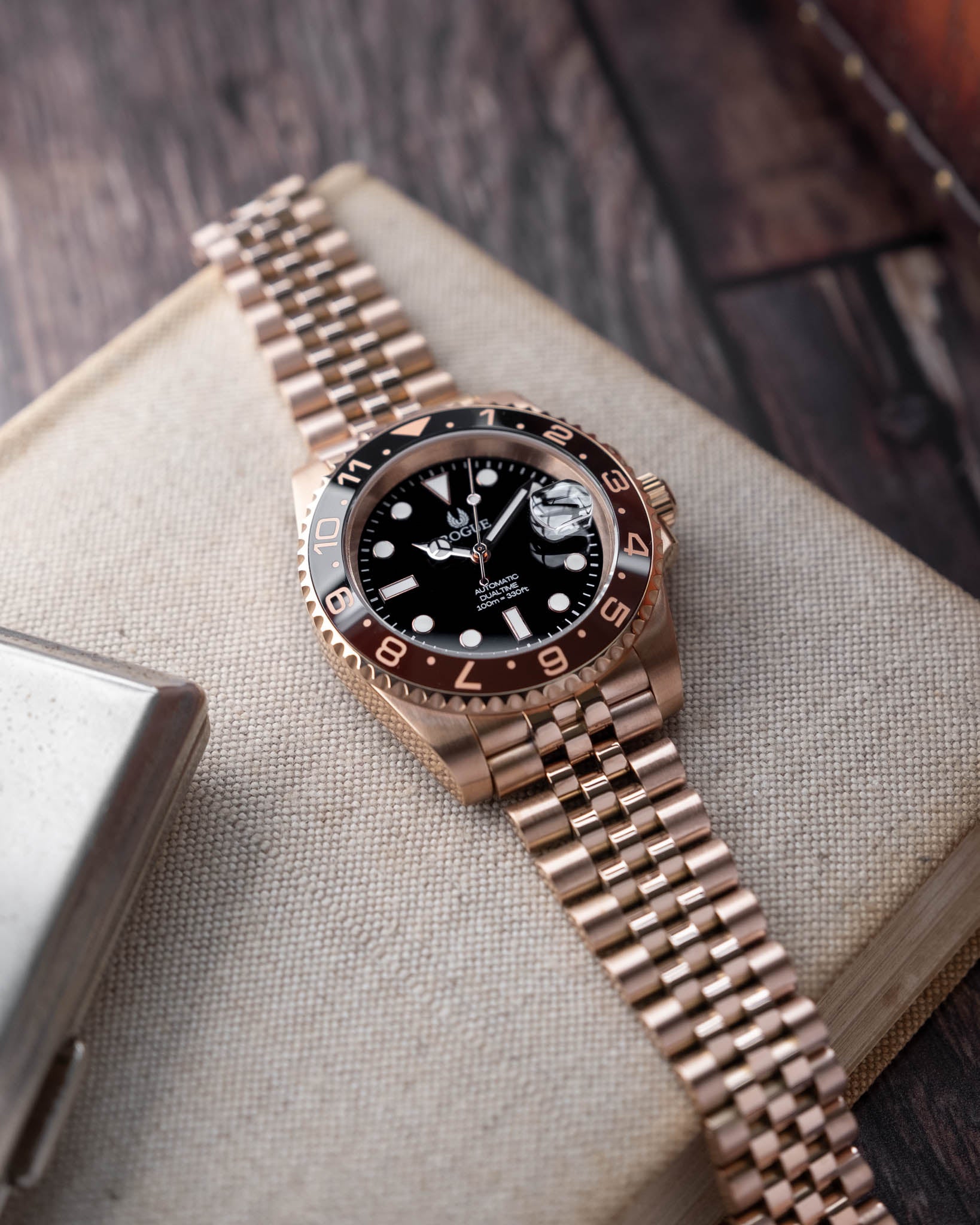 41mm rose brushed/polished stainless steel case